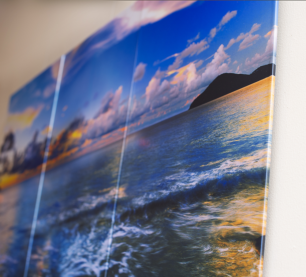 The image is printed on metallic paper with a satin laminate finish.Slim Wraps bridge the gap between a canvas wrap and a metal print. With a smooth shimmery non-reflective finish they exhibit beautiful colour saturation. The image wraps around the mount with a soft rounded edge -they have a slim profile and would be ideal for hanging in close quarters. Extremely light, they are delivered ready to hang on your wall. Available in Square, landscape, portrait and also available as a finish for our splits and cluster designs.